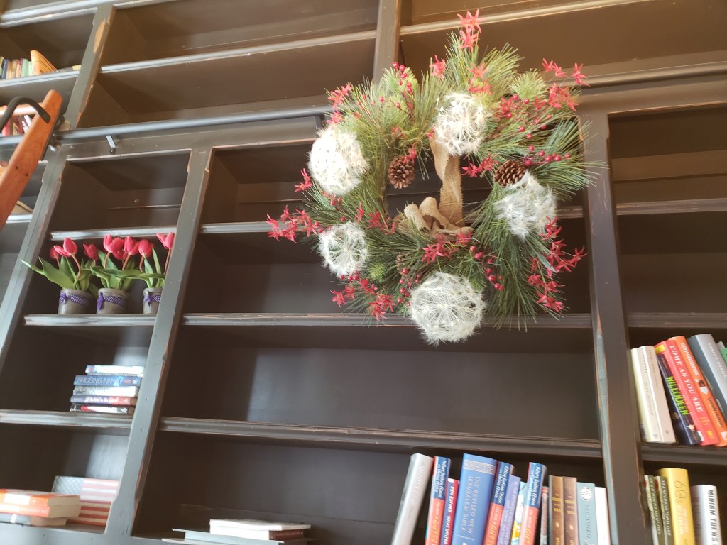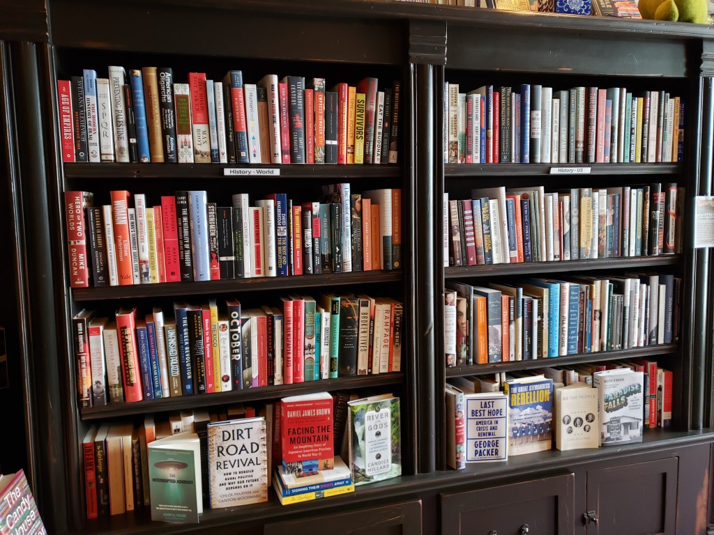The bookshop offers a variety of items. These include books in various genres, that cover almost every topic imaginable, and for all ages. They also have puzzles, gift wrap paper, cards, candles, and glasses.