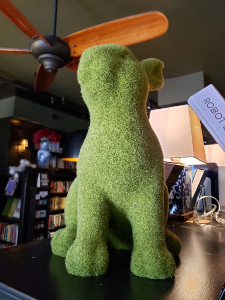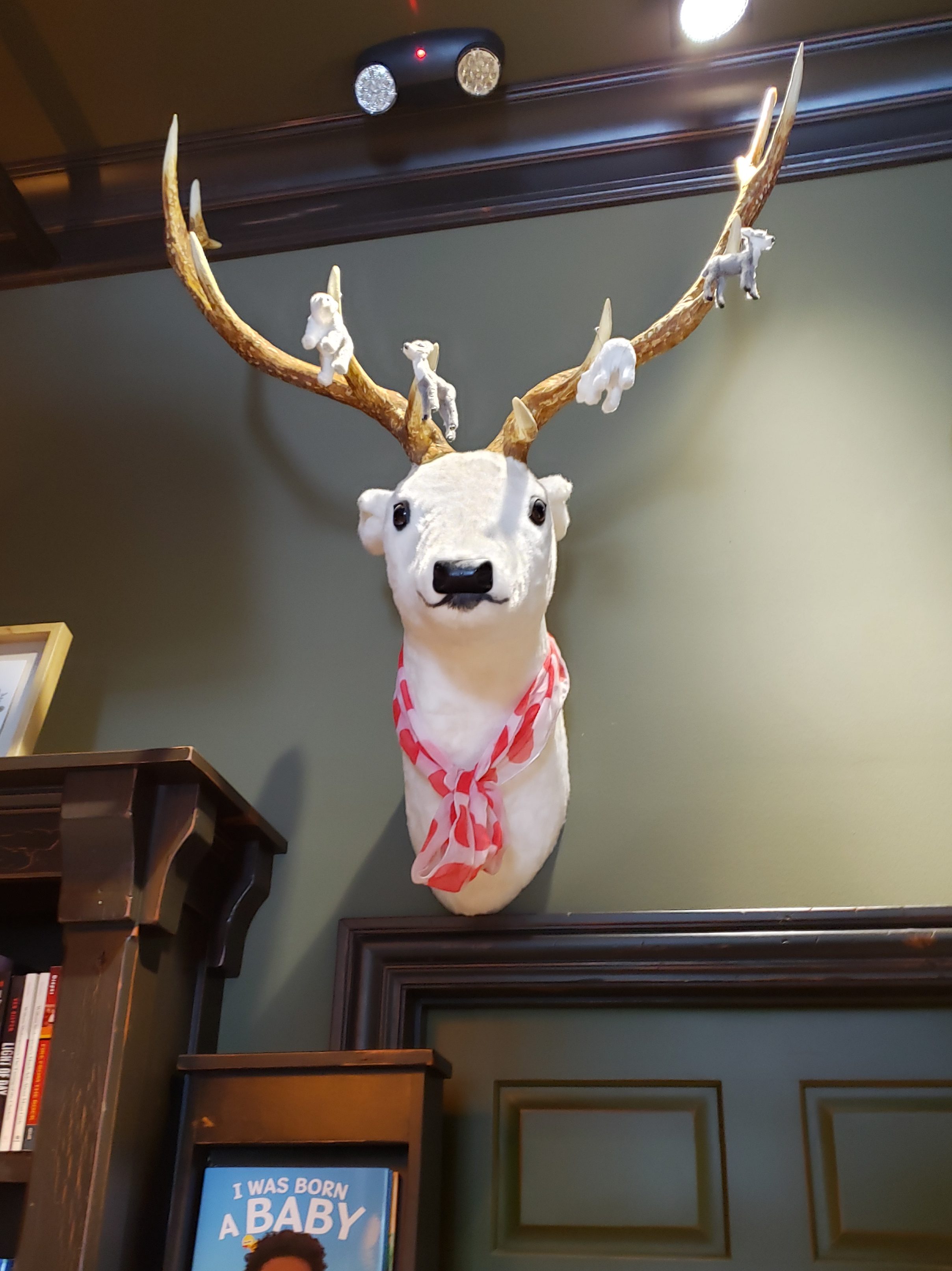 Of course, I can’t go without mentioning some of the more quirkier decor like a sliding ladder, a green rabbit statue, and leftover Christmas items.