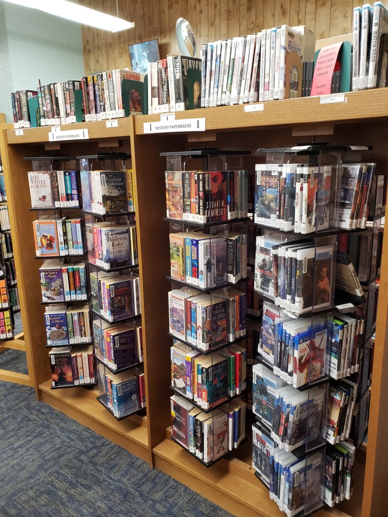 The library offers the things one expects to have for patrons to borrow like books, DVDs, music CDs, audiobooks, video games, magazines, and newspapers.