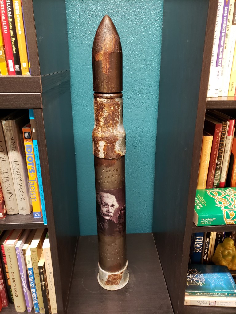 One of the most unique things I found there was a basket full of walking canes carved from trees. These could’ve fit right in the Lord of the Rings universe. I also saw an artillery shell with Albert Einstein’s face on it with the description “Forces Always Attract,” which was pretty cool.