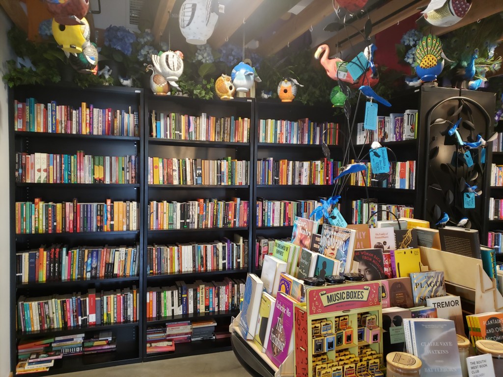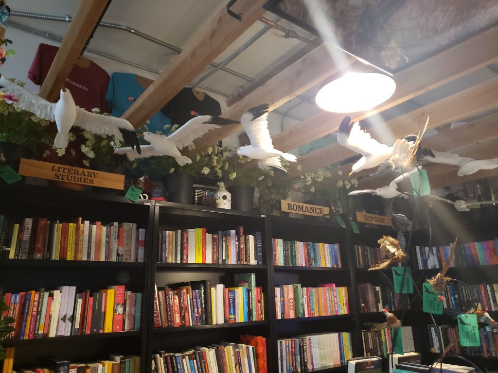 What makes this a truly unique bookshop is the artificial bird sanctuary. I had never seen a bookstore with a reserve like that before. On top of that, each bird had a name and an autobirdography. My favorite is Lillian the Blue Jay. I wish I would have bought her, yet I have cats, and they might try to eat her.