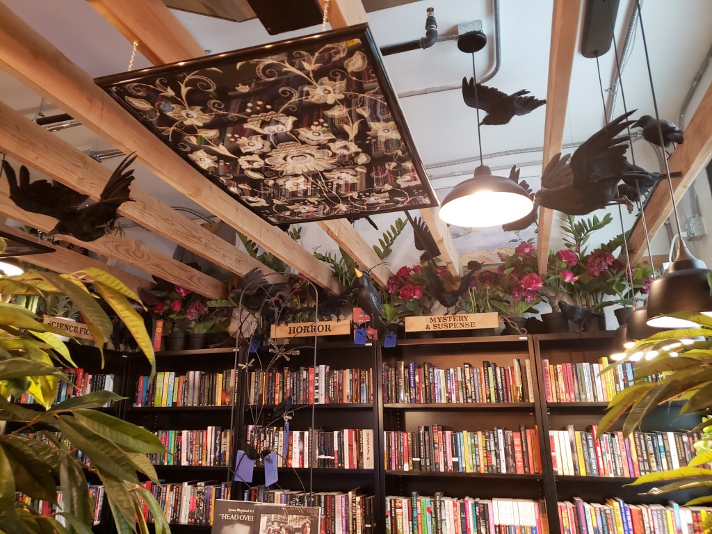 Another cool aspect about the sanctuary was where the birds were placed. There were some types that were all over the store like blue jays and cardinals. And, there were others that could be found in one spot. For example, the penguins were in the Photography & Fashion/Art Folios section, chickens were in Cooking, doves were in Romance, and ravens were in Horror. In addition, I thought it was cute that the flamingos were in the Graphic Novel part of the store.
